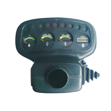 該儀表配有液晶計(jì)時(shí)表、水溫表、燃油表、油溫表(任選)、JK406C預(yù)熱起動(dòng)開(kāi)關(guān)、JK107雙檔車燈開(kāi)關(guān)、紅波按鈕開(kāi)關(guān)、左右轉(zhuǎn)向指示燈、預(yù)熱指示燈、充電指示燈、空濾指示燈、遠(yuǎn)光指示燈、駐車指示燈、油水分離器、油壓報(bào)警燈及儀表線束。